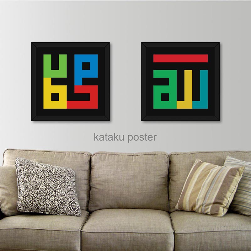 Set Poster Kaligrafi Kufi Allah Muhammad Warna Warni Hiasan Dinding Dekorasi Ruangan Islami - Source
