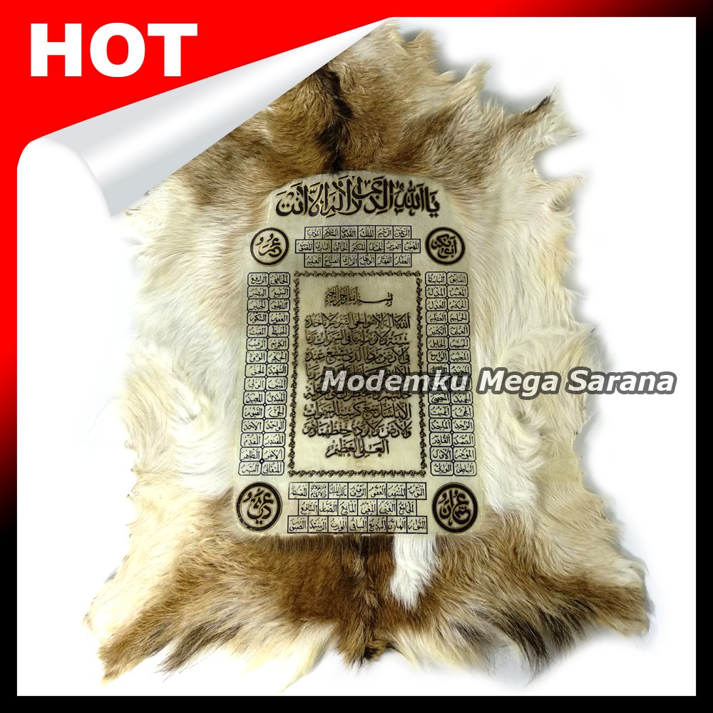 Kaligrafi Lembaran Ayat Kursi Asmaul Husna Vertikal Kulit Kambing Full Body 77x55cm - Source