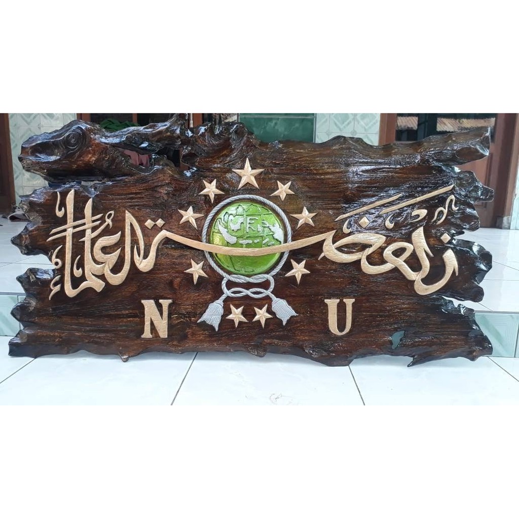 Kaligrafi Nu Nu Nahdatul Ulama Logo Nu Ukiran Kayu Jati - Source