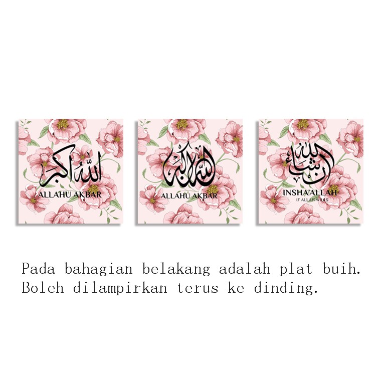 Pink Peony Floral Khat Kufi Wall Art Islamic Muslim Pictures Prins Home Decor Set Of 3 - Source